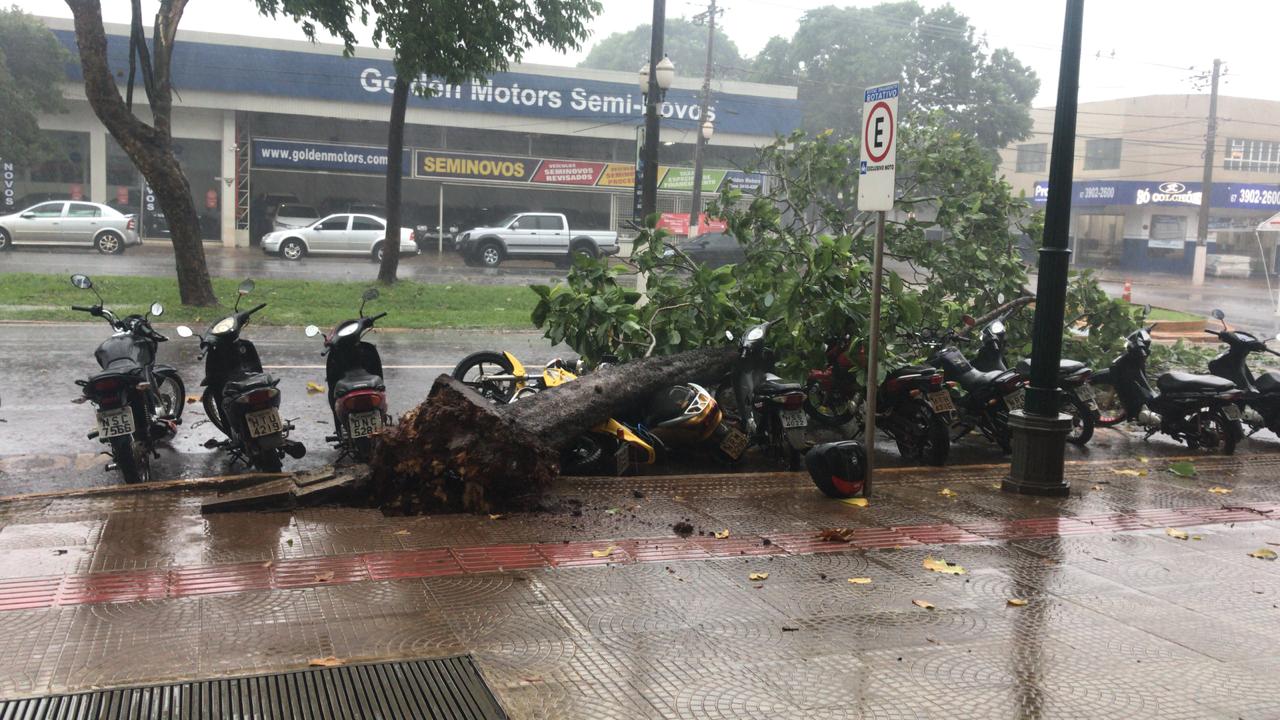 Regiaonline Notícias: Em Dourados, chuva derruba árvore em cima de várias motos.
