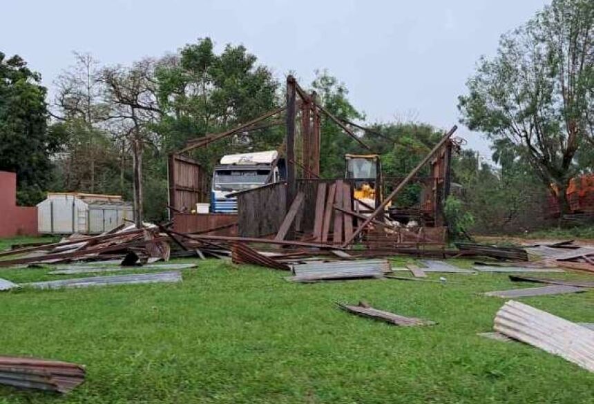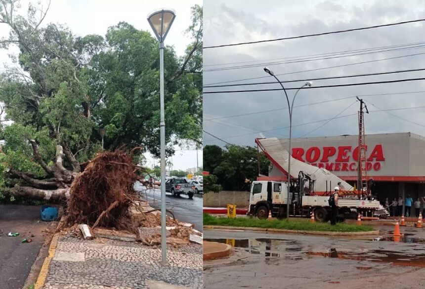 Ventania derruba árvores centenárias e destelha empresas durante temporal em cidade de MS