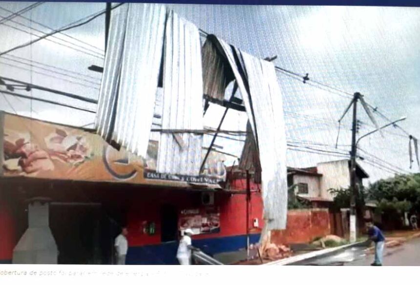 Temporal provoca queda de árvores e arranca cobertura de posto em cidade de MS