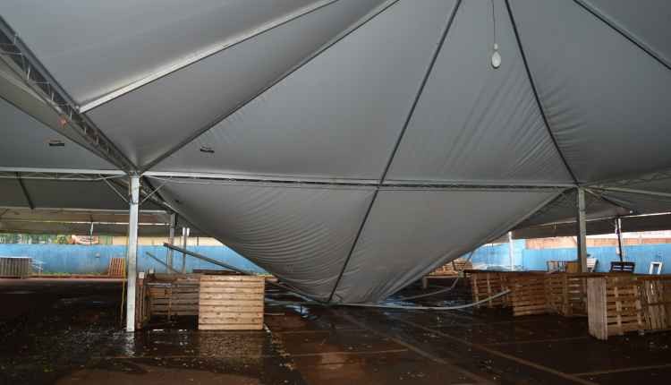 Ventania derruba estrutura de feira que vai acontecer nesta terça em Dourados