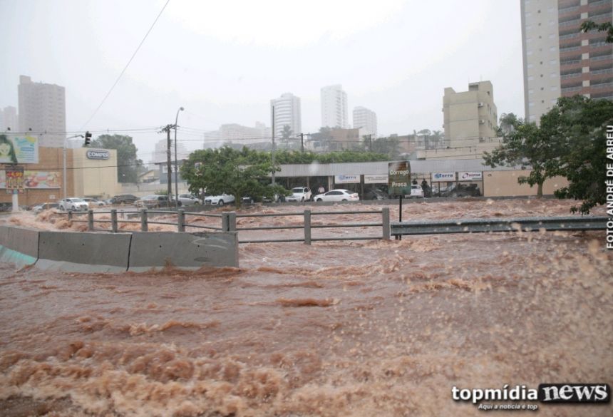 Chuva transborda córregos, alaga ruas e derruba árvores em Campo Grande