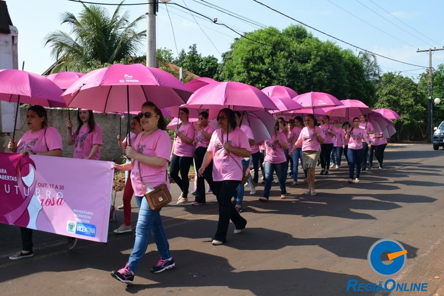 Regiaonline Saúde: Em Vicentina, caminhada em alusão ao "Outubro Rosa" envolveu participação de diversas mulheres.