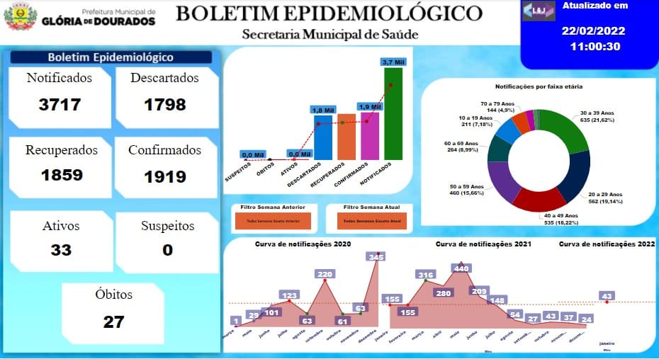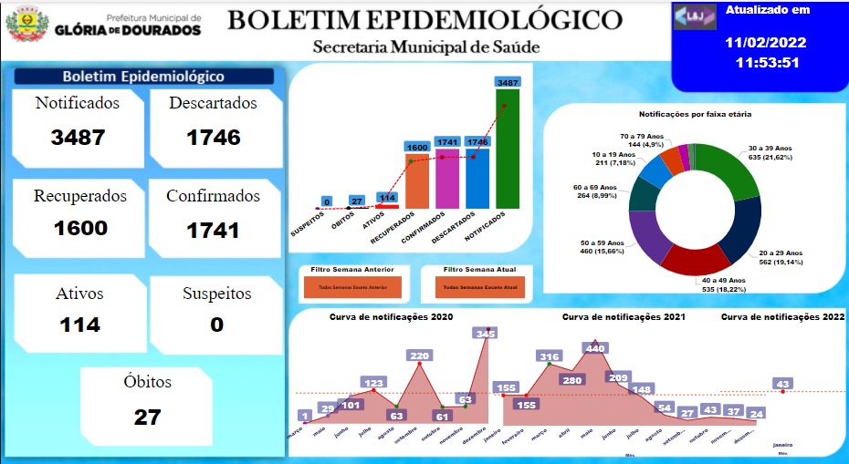 Regiaonline Plantão Coronavírus: Glória de Dourados segue com queda nos casos ativos de Sars-Cov-2.