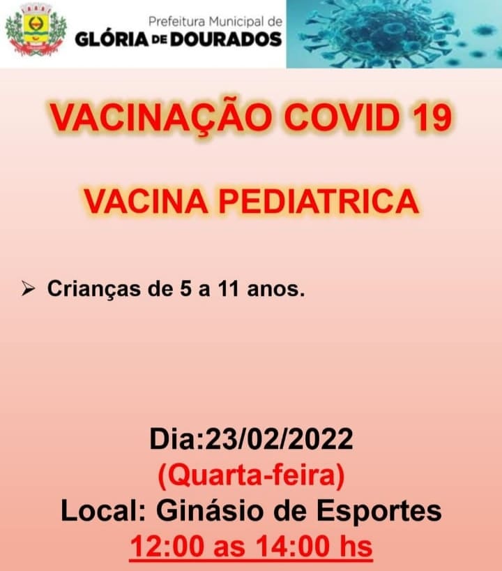 Regiaonline Vacinação Covid-19: Nesta quarta-feira, é dia de Vacina Pediátrica em Glória de Dourados.