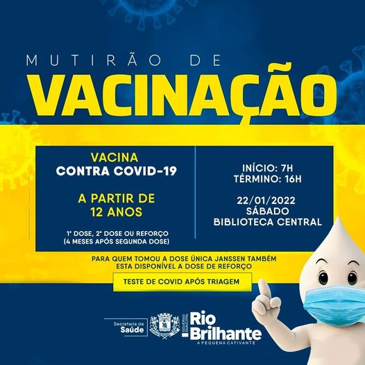 Rio Brilhante: Sábado (22) tem mutirão da vacinação contra a Covid-19: