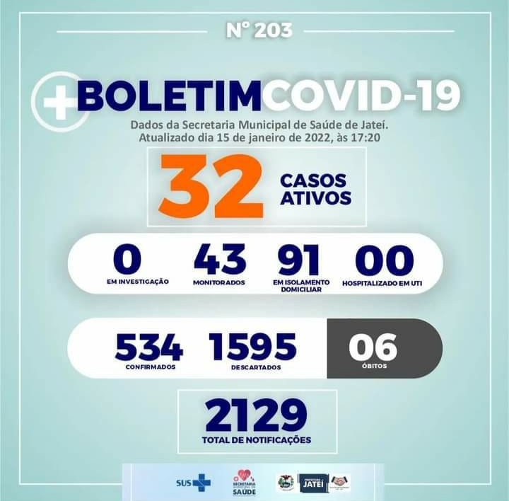 Regiaonline Plantão Coronavírus: Jateí tem alta nos casos, e chega a 32 ativos.