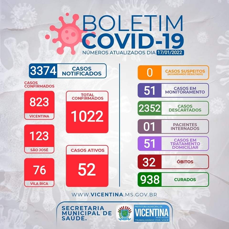 Regiaonline Plantão Coronavírus: Vicentina chega a 52 casos ativos.