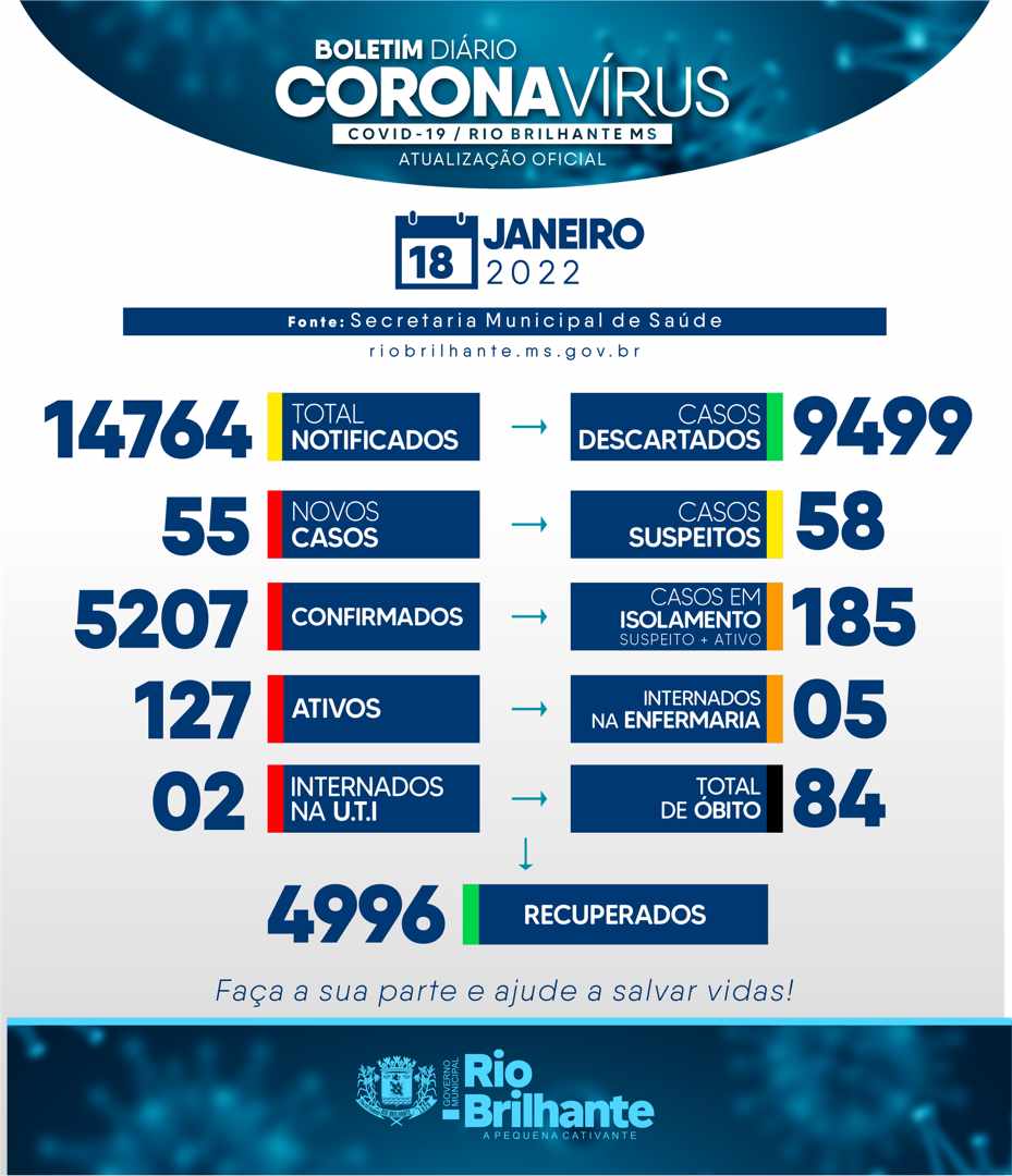 Regiaonline Plantão Coronavírus: Rio Brilhante tem 55 novos casos, 127 ativos e 58 suspeitos nesta terça-feira.