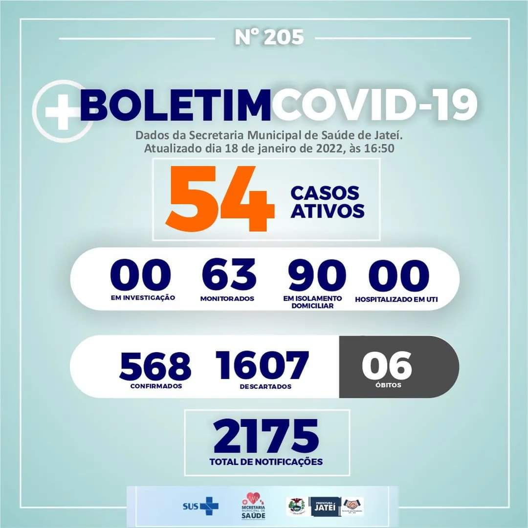 Regiaonline Plantão Coronavírus: Jateí tem 54 ativos nesta terça-feira.