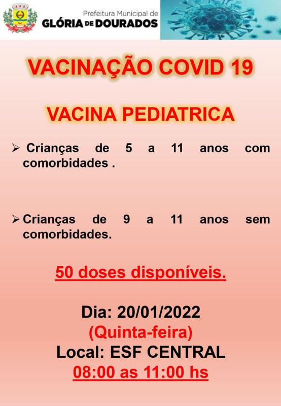 Regiaonline Imunização Covid-19: Em Glória de Dourados, vacinação para crianças será nesta quinta-feira.