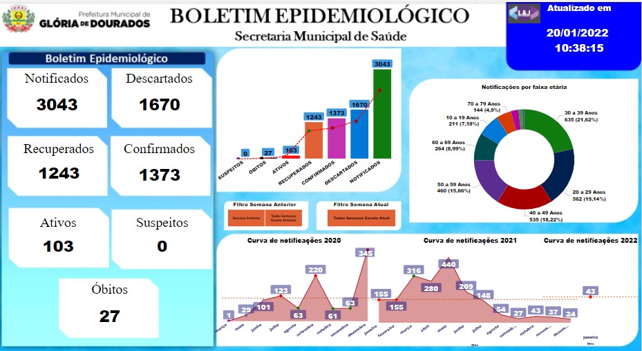 Regiaonline A Pandemia não Acabou: Glória de Dourados tem 103 ativos nesta quinta-feira.