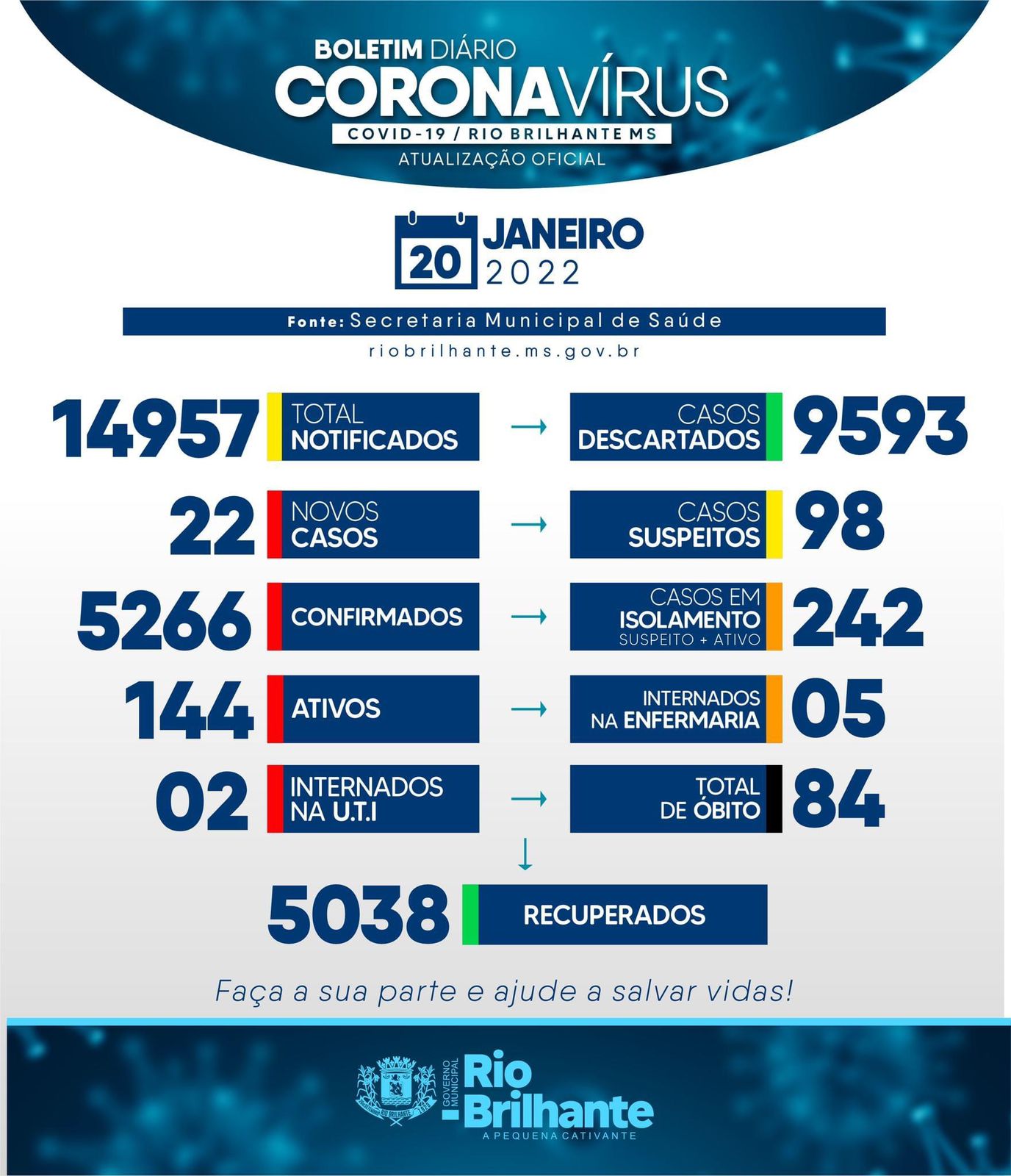 Regiaonline Plantão Coronavírus: Com 22 novos casos, Rio Brilhante chega a 144 ativos.