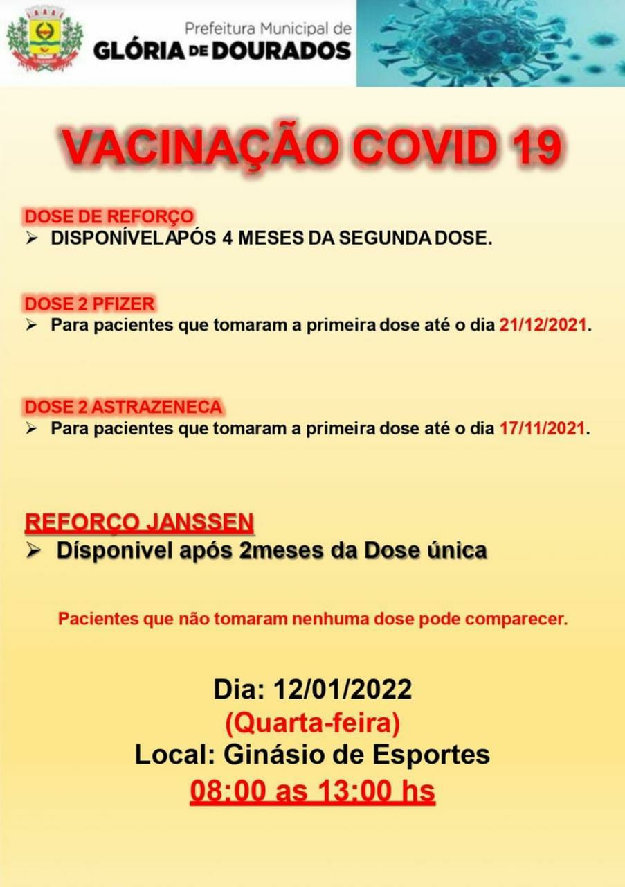 Regiaonline Imunização: Vacinação Covid-19 continua nesta quarta-feira em Glória de Dourados.