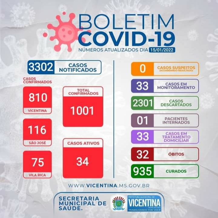 Regiaonline Plantão Coronavírus: Vicentina tem novo aumento de casos e chega a 34 ativos.