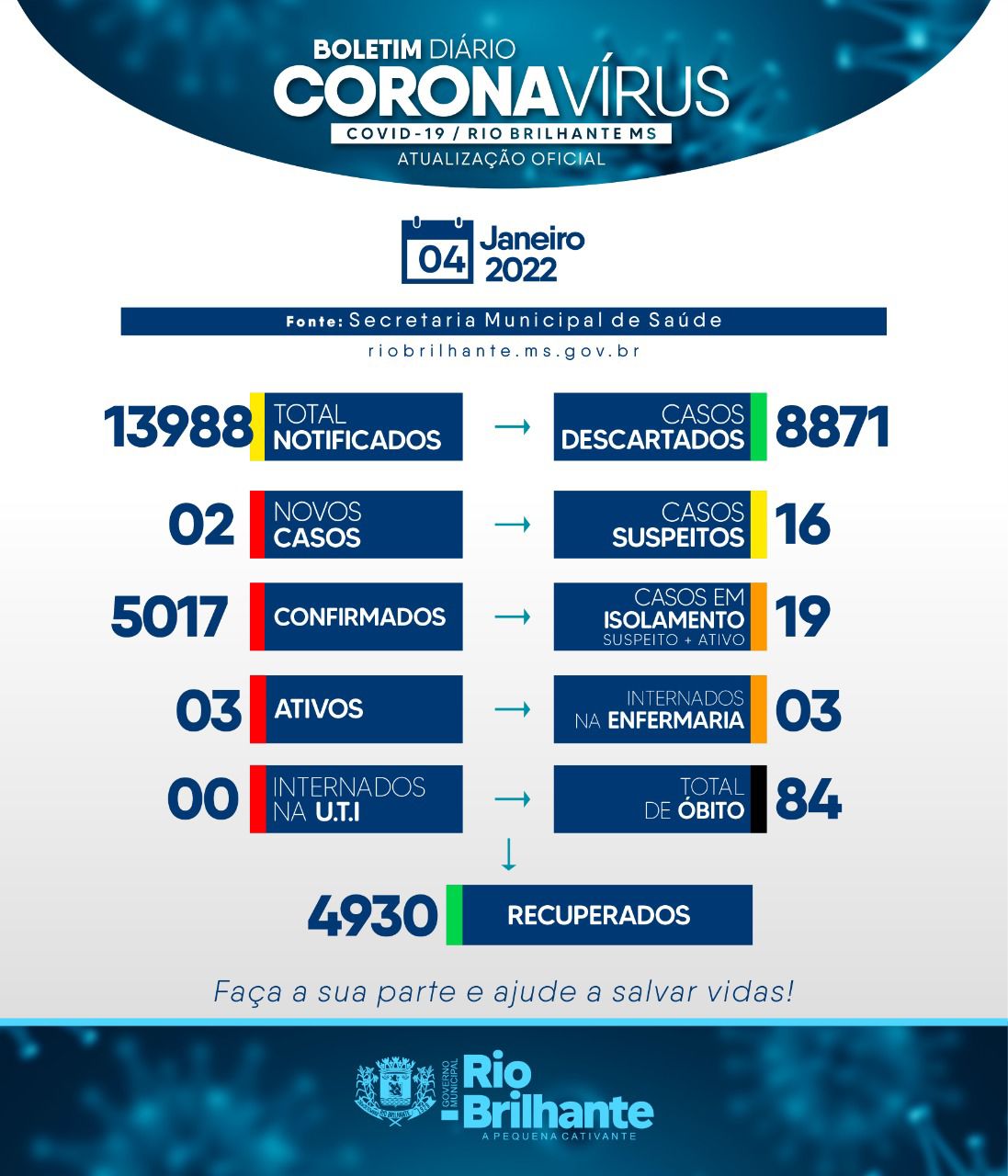 Regiaonline Plantão Coronavírus: Rio Brilhante tem 05 casos ativos nesta quarta-feira.