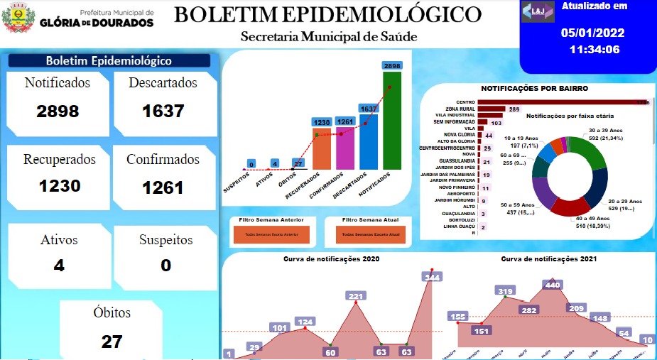 Regiaonline Plantão Coronavírus: Em Glória de Dourados, casos ativos zeraram novamente.