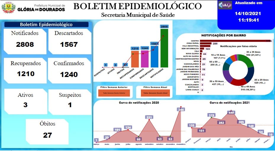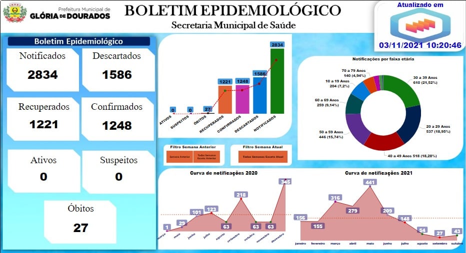 Regiaonline Plantão Coronavírus: Glória de Dourados tem 06 ativos nesta quarta-feira.