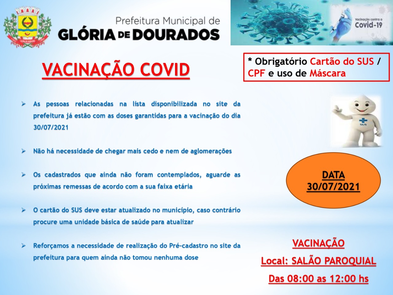 Regiaonline Imunização Covid-19: Em Glória de Dourados, etapa de Vacinação acontece nesta sexta-feira (30).