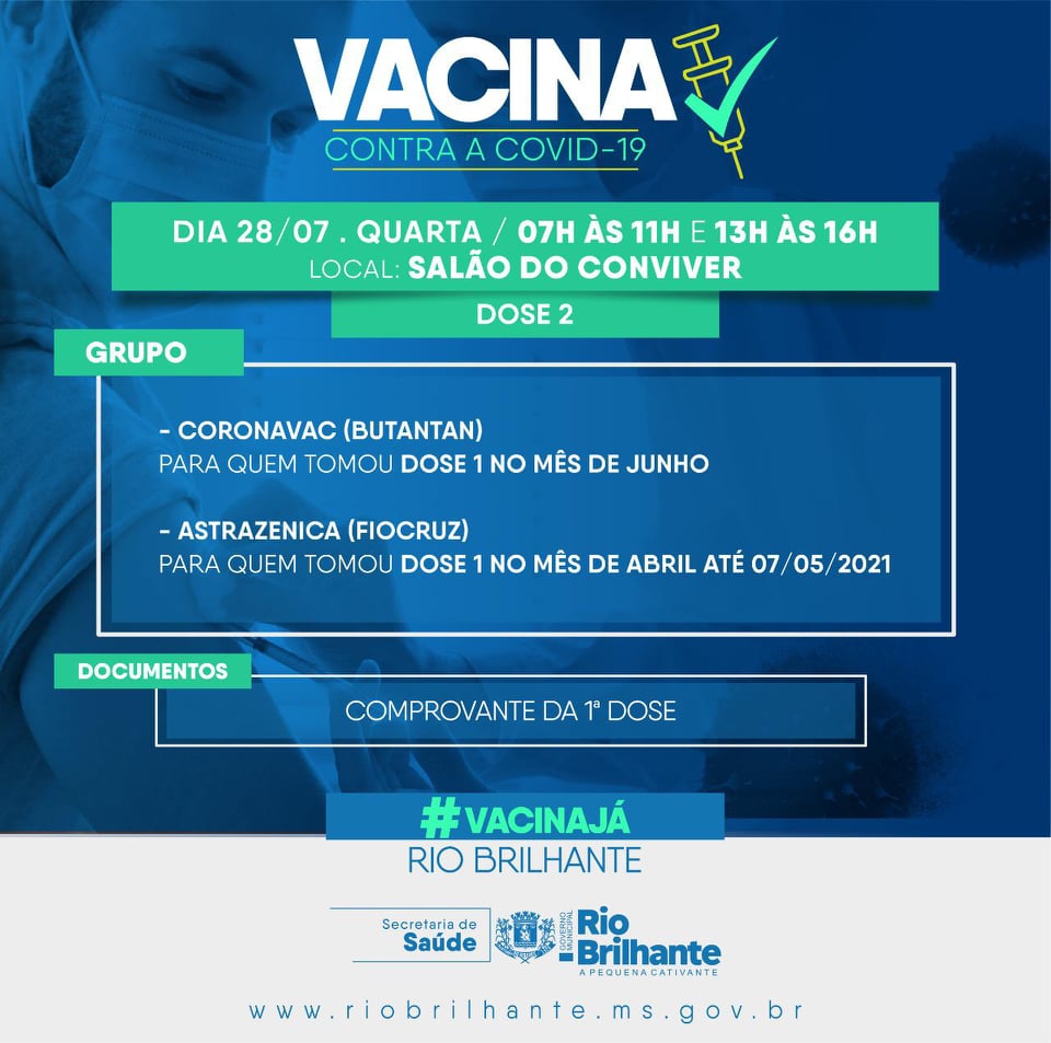 Regiaonline Imunização: Rio Brilhante tem etapa de Vacinação Covid-19 nesta Quarta-feira.