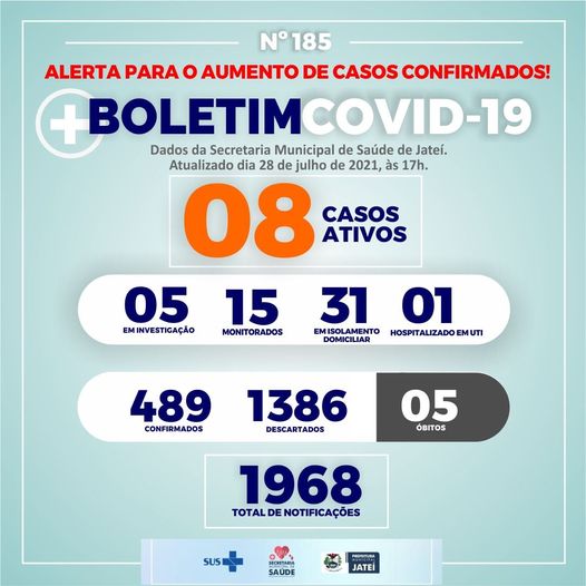 Regiaonline Coronavírus: Jateí mantém os 08 casos ativos,mas tem salto para 31 os pacientes em isolamento domiciliar.