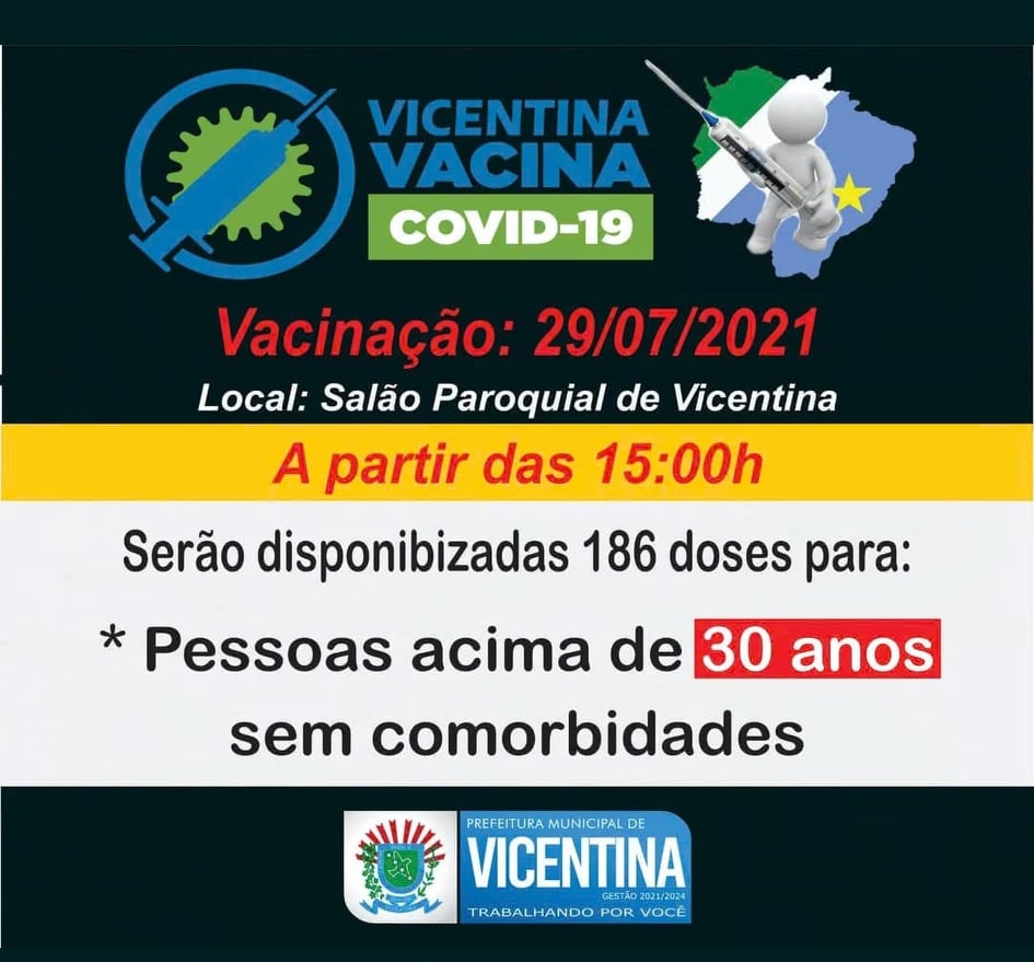 Regiaonline Imunização Covid-19: Vicentina vacina contra Sars-Cov-2 nesta quinta-feira.
