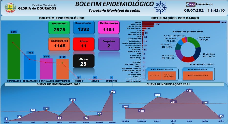 Regiaonline Plantão Coronavírus: Glória de Dourados tem 19 ativos e 0 suspeitos nesta sexta-feira.