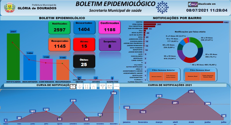 Regiaonline Plantão Coronavírus: Em Glória de Dourados, casos ativos chegam a 15 e suspeitos 04.