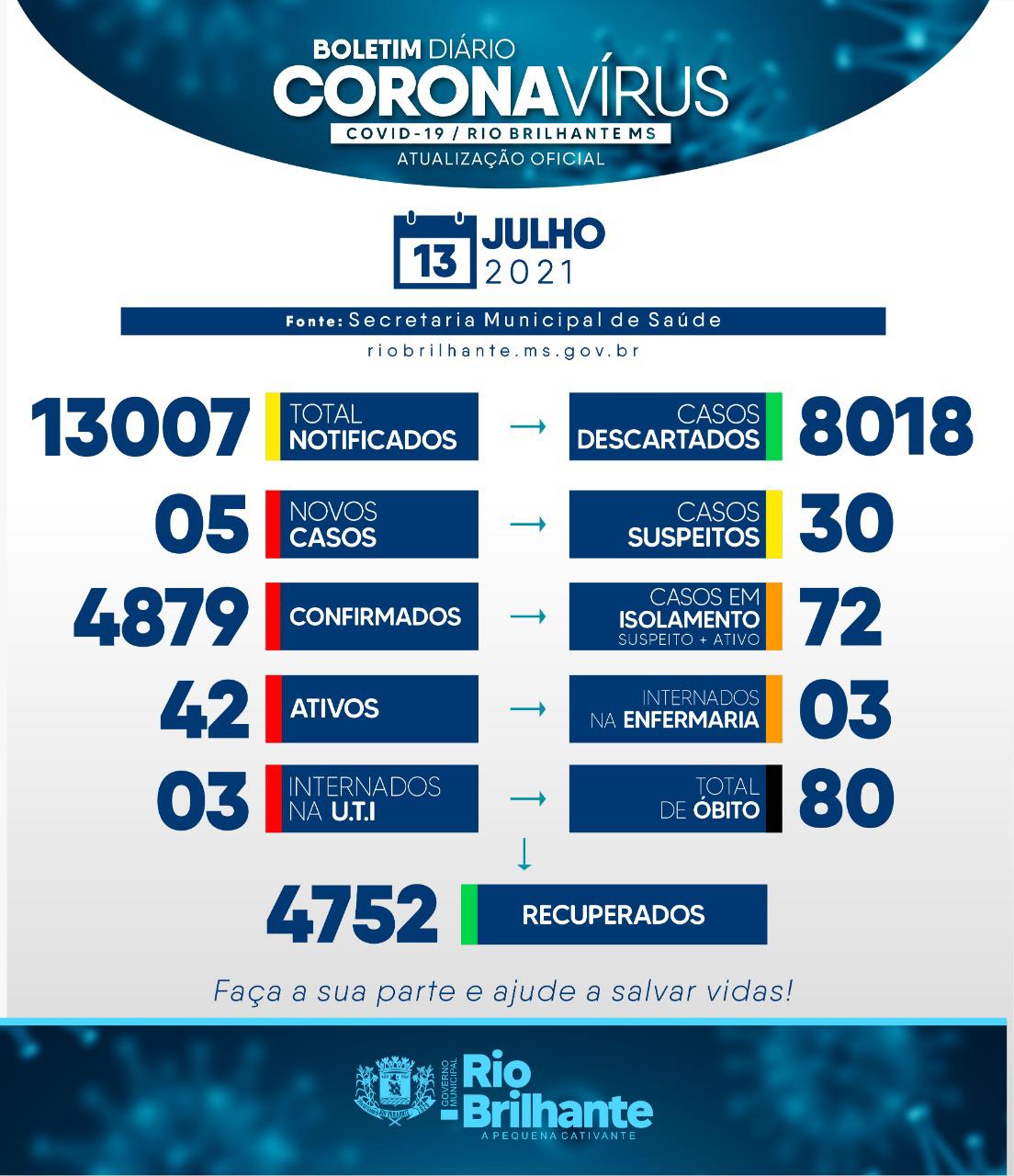 Regiaonline Plantão Coronavírus: Rio Brilhante tem 42 ativos e 05 novos casos nesta terça-feira.