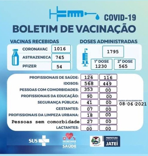 Regiaonline Saúde: Secretaria Municipal de Saúde de Jateí-MS divulga Vacinômetro da Campanha de Vacinação contra Sars-Cov-2.
