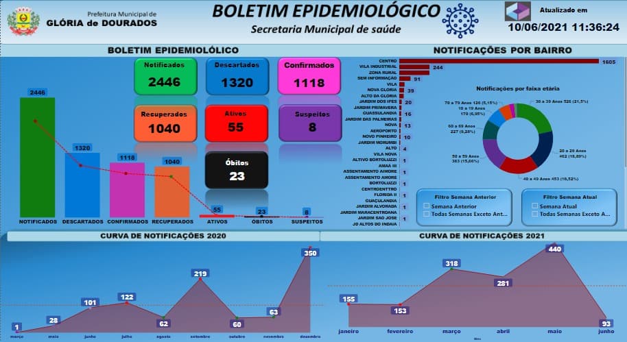 Regiaonline Plantão Sars-Cov-2: Na bandeira laranja, Glória de Dourados tem 55 casos ativos nesta quinta-feira.