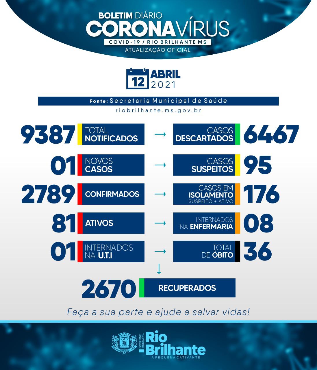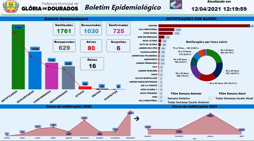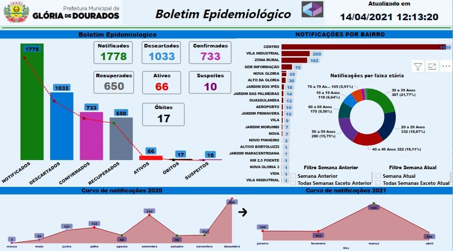 Regiaonline Plantão Coronavírus: Em Glória de Dourados, casos ativos são 66, 10 suspeitos e 01 óbito nesta quarta-feira.