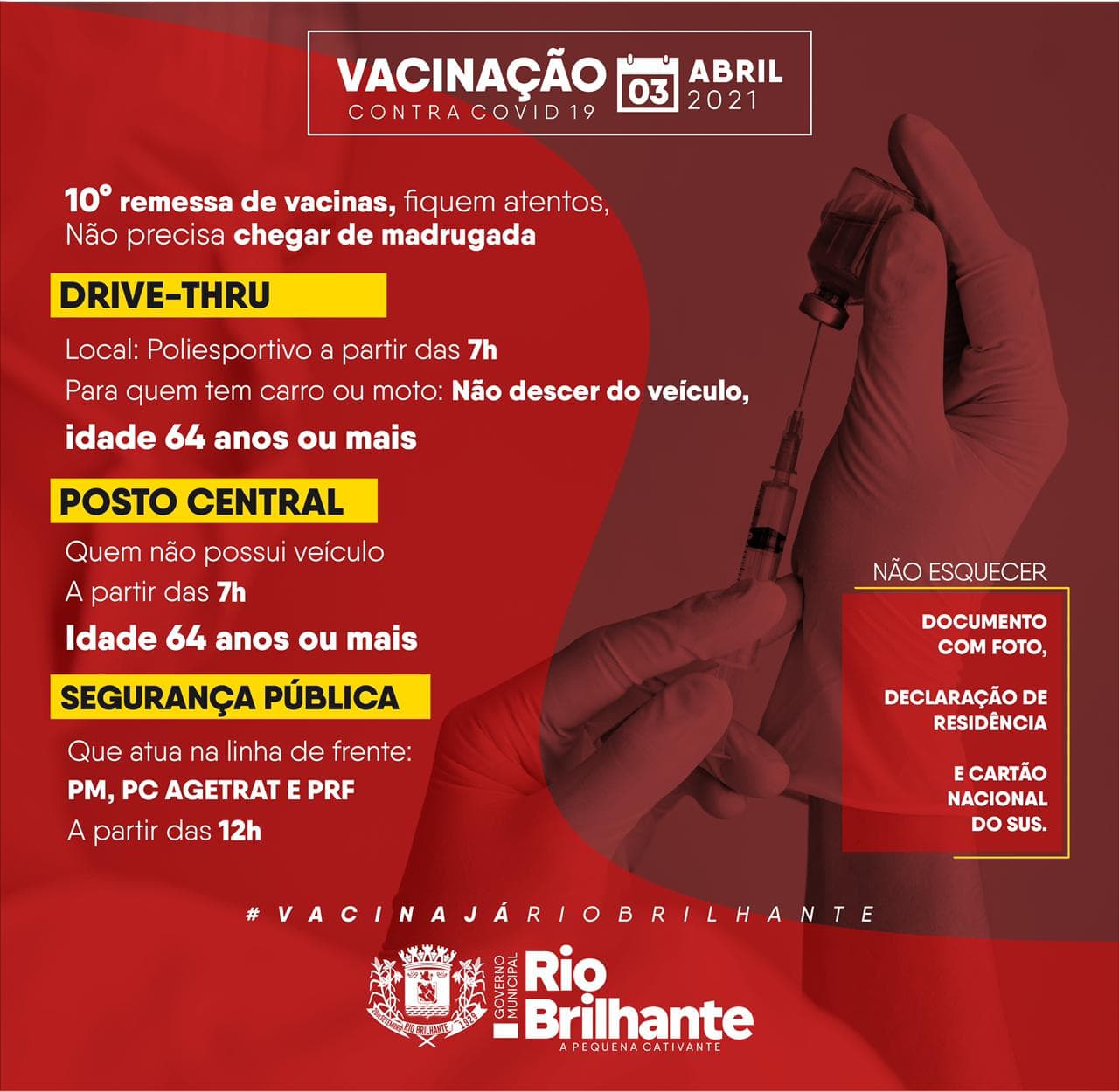 Regiaonline Imunização contra Covid-19 e Solidariedade: Prefeitura Municipal de Rio Brilhante orienta sobre vacinação contra Sars-Cov-2 e Doação de Alimentos.