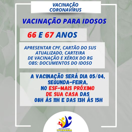 Regiaonline Imunização:Em Ivinhema, vacinação de idosos de 66 e 67 anos acontece nesta segunda-feira.
