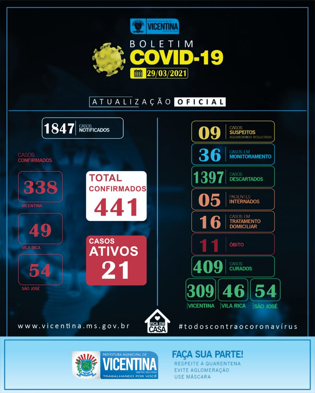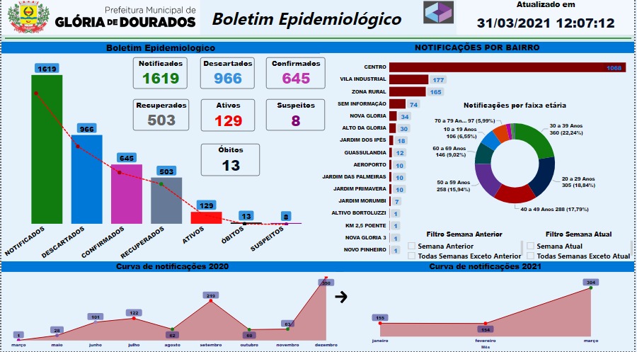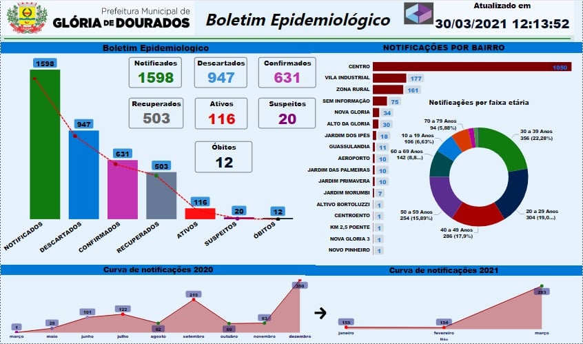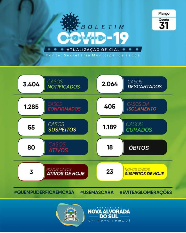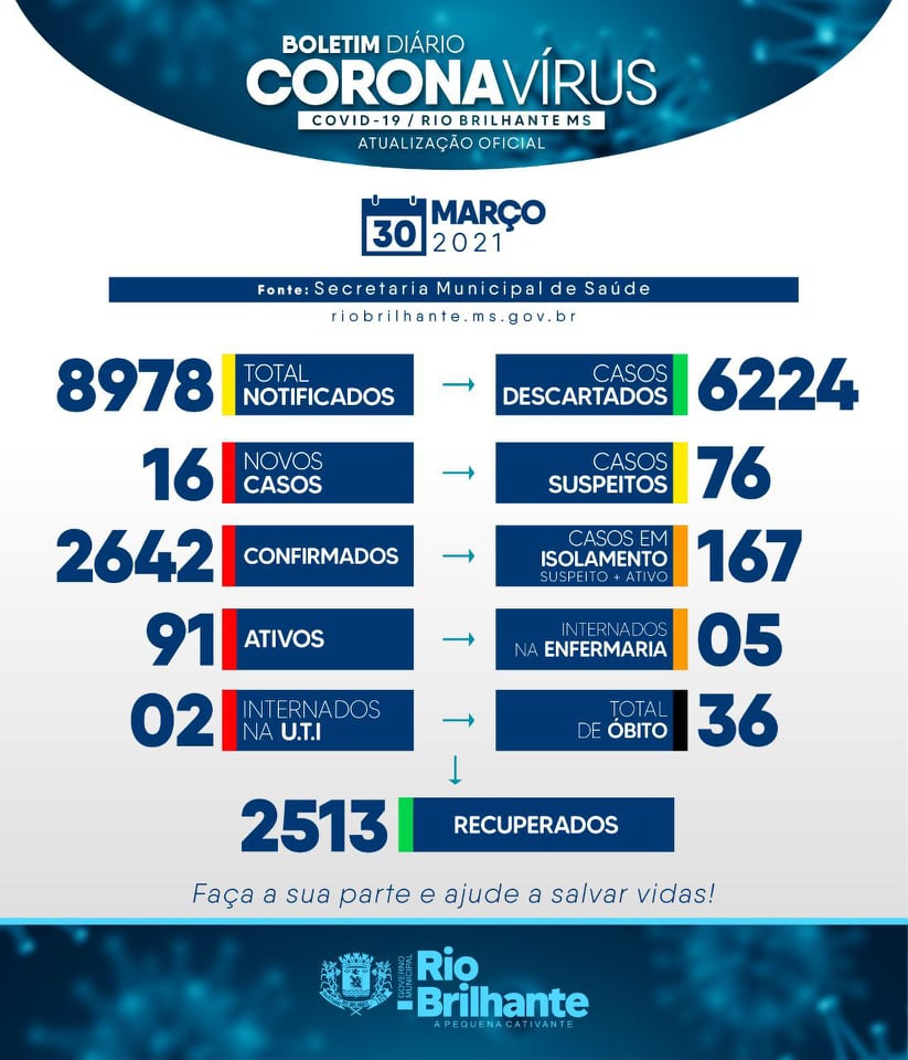Regiaonline Boletim Epidemiológico: Em Rio Brilhante, casos ativos de Sars-Cov-2 aumentam para 91, em dia de 16 novos casos.