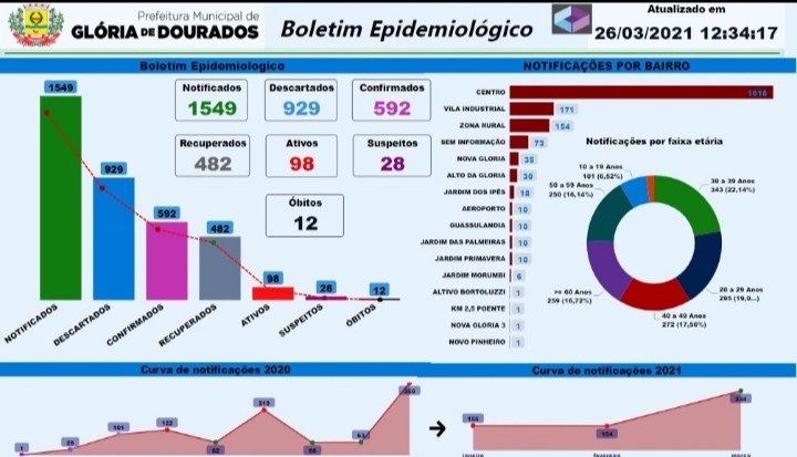 Regiaonline Alerta Vermelho: Glória de Dourados chega a 98 casos ativos de Sars-Cov-2 nesta sexta-feira.