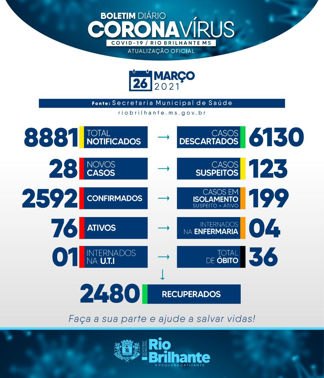 Regiaonline Plantão Coronavírus: Em Rio Brilhante, 28 novos casos e ativos chegam a 76.