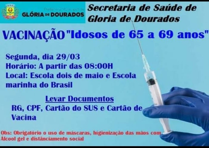 Regiaonline Imunização Covid-19: Em Glória de Dourados, vacinação de Idosos de 65 a 69 anos será nesta segunda-feira.