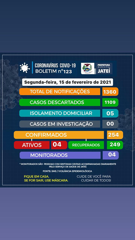 Regiaonline Sars-Cov-2: Jateí tem 05 casos ativos de Covid-19.