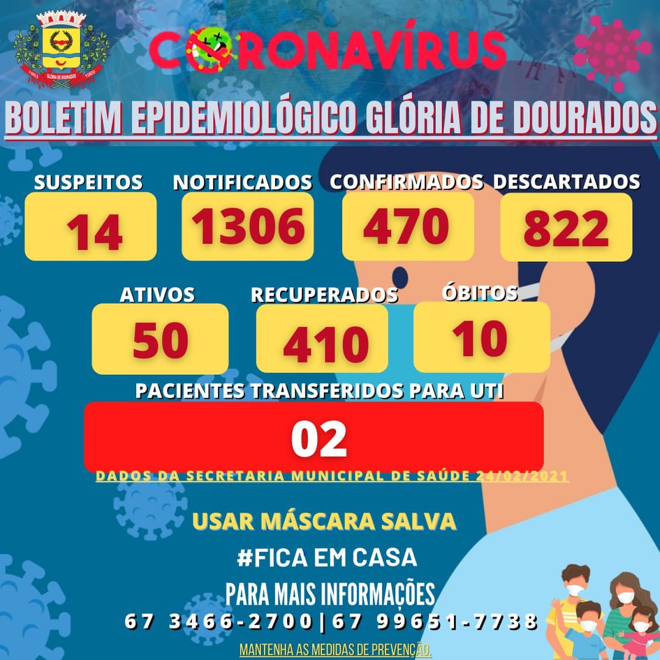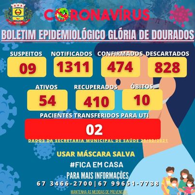 Regiaonline Plantão Coronavírus: Glória de Dourados tem queda nos casos ativos de Sars-Cov-2.