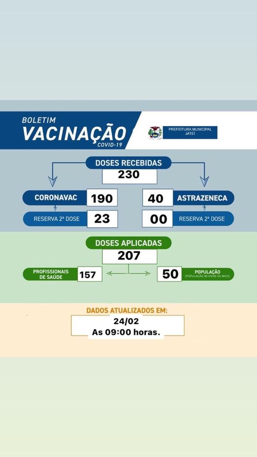 Regiaonline Poder Executivo: Secretaria Municipal de Saúde de Jateí-MS divulga vacinômetro contra Covid-19.