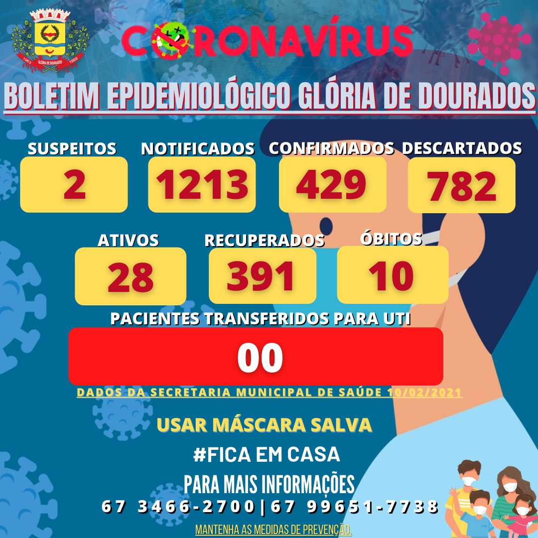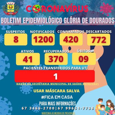 Regiaonline Coronavirus: Em Glória de Dourados, casos ativos caem para 28 e suspeitos são 02.