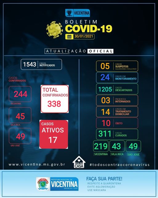 Regiaonline Plantão Coronavírus: Em Glória de Dourados, mais 02 pacientes testam positivo para Covid-19, e ativos chegam a 38.