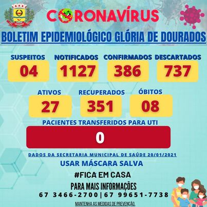Regiaonline Plantão Coronavírus: Em Glória de Dourados, mais 01 paciente testa positivo, e casos ativos aumentam para 27.