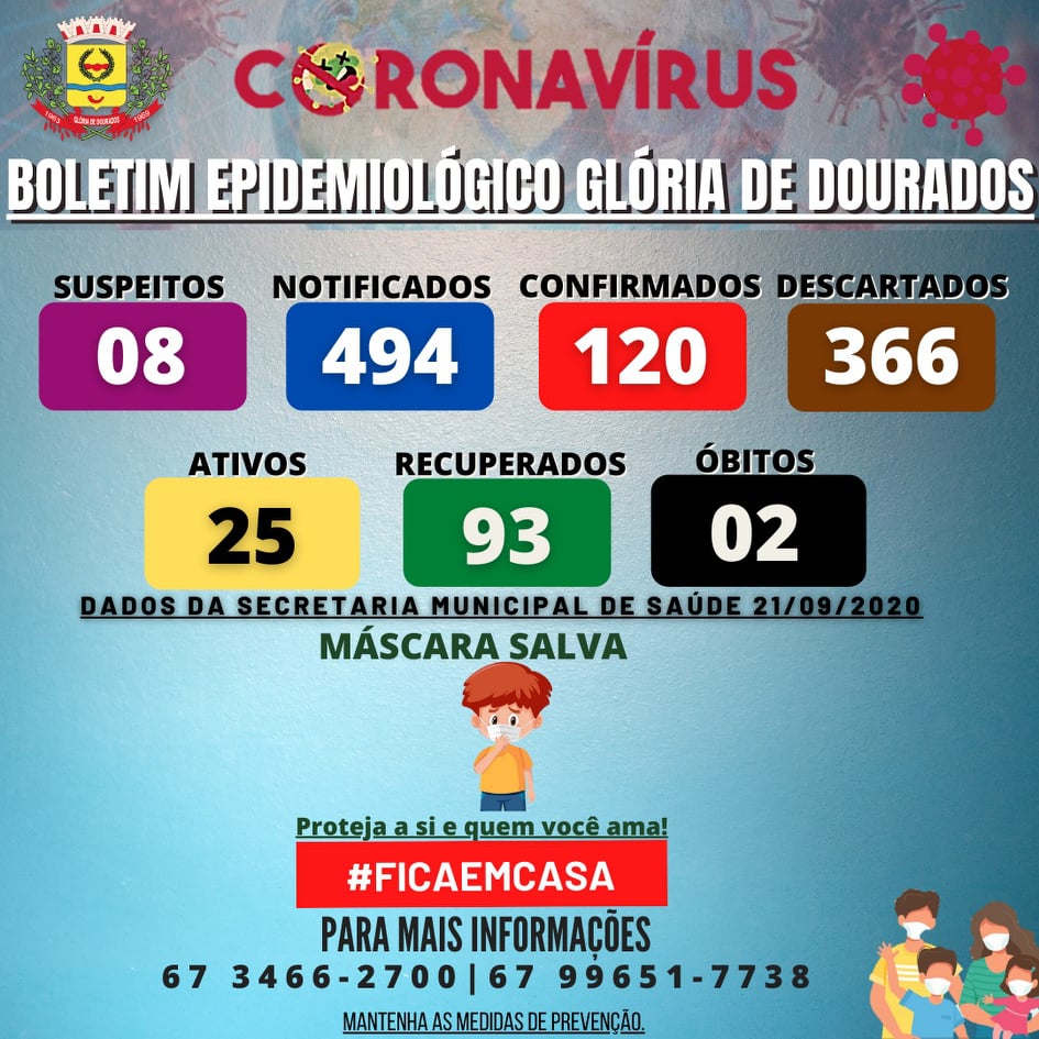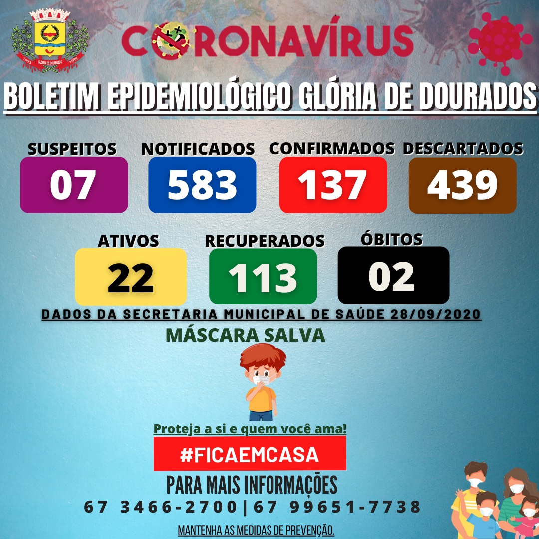 Regiaonline Boletim Epidemiológico Covid-19: Glória de Dourados chega a 113 recuperados e 22 casos ativos.