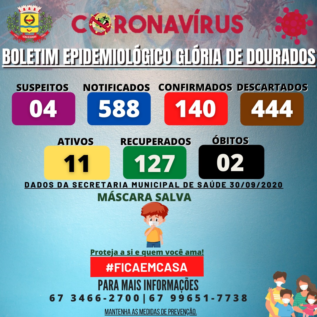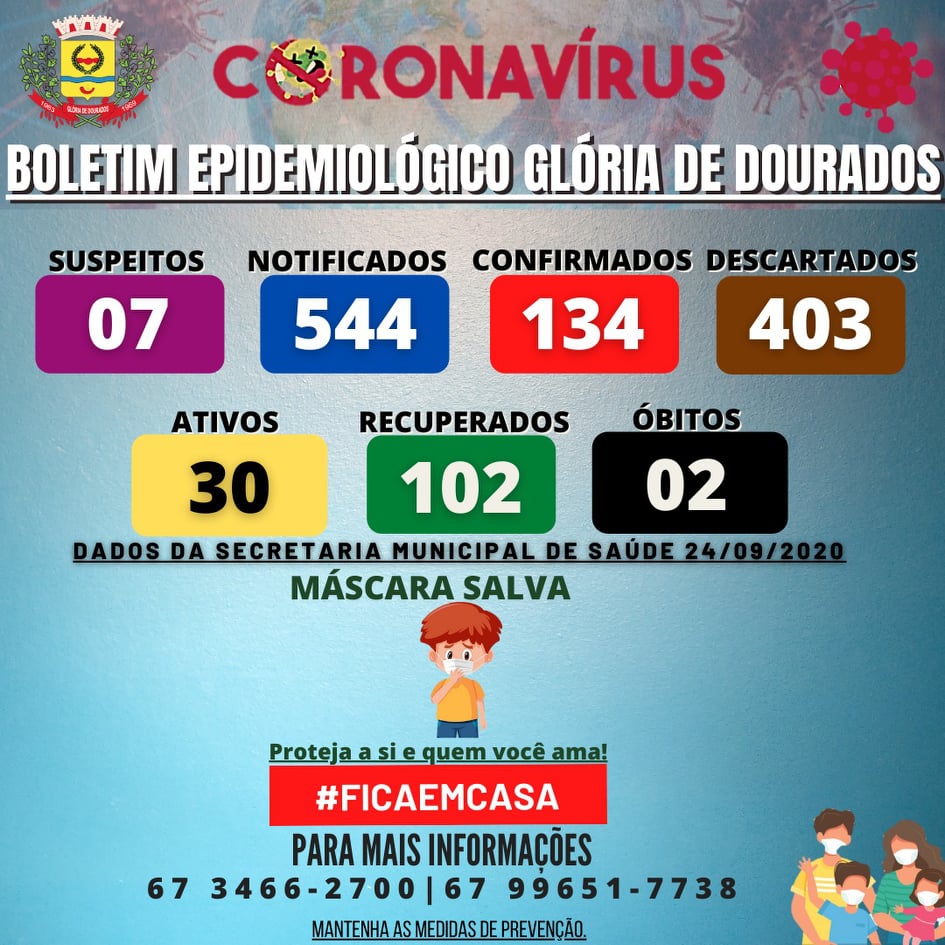 Regiaonline Boletim Epidemiológico Covid-19: Glória de Dourados chega a 102 recuperados, e ativos chegam a 30.