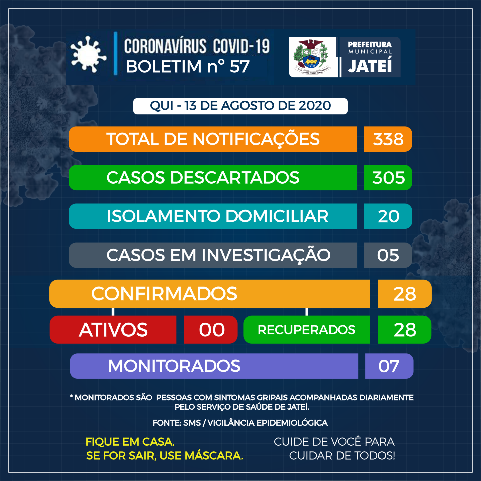 Regiaonline Plantão Coronavírus: Jateí completa 15 dias sem nenhum novo caso de SARS-COV-2.