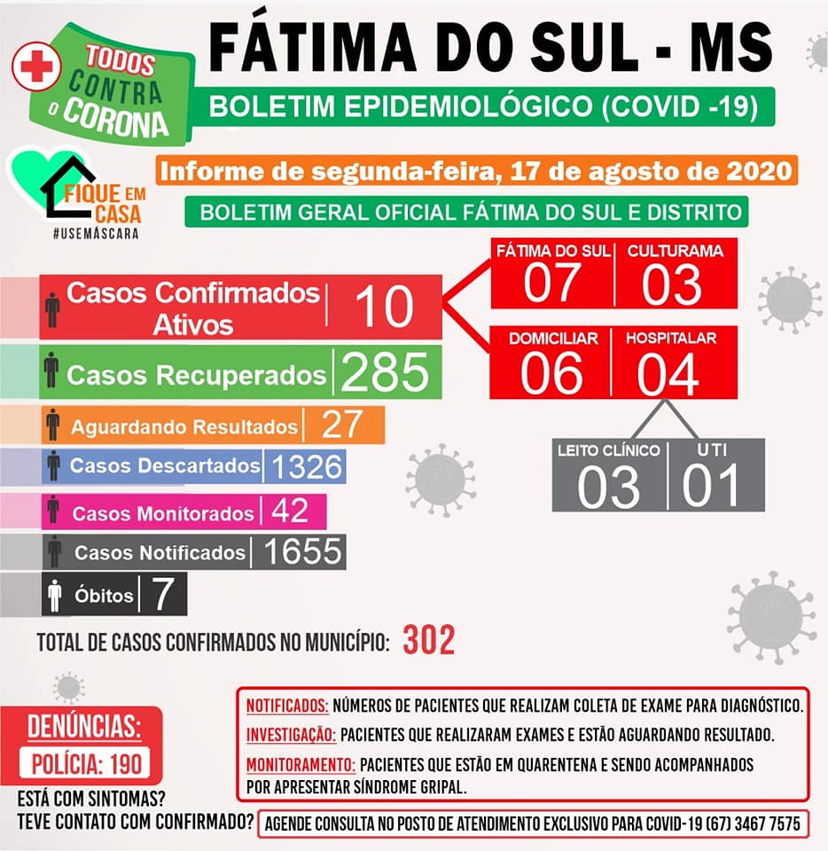 Regiaonline Plantão Sars-Cov-2: Em Fátima do Sul, 287 pacientes estão recuperados do Novo Coronavírus.