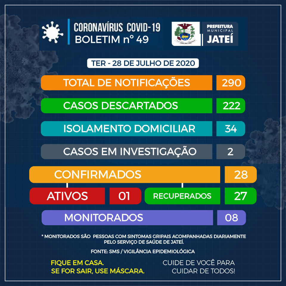 REGIAONLINE PLANTÃO CORONA VÍRUS: EM JATEI, MAIS UM PACIENTE TESTA POSITIVO PARA COVIDE-19 NUMERO TOTAL DE CONFIRMADOS CHEGAM A 28, E RECUPERADOS CHEGAM A 27.
