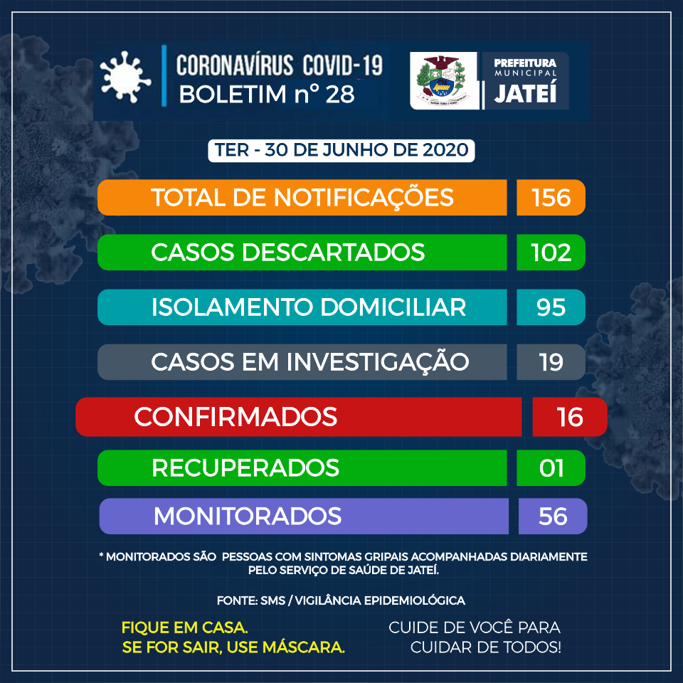 Jateí testa mais 04 positivos para o Covid-19, já são 16, confira o boletim das últimas 24h