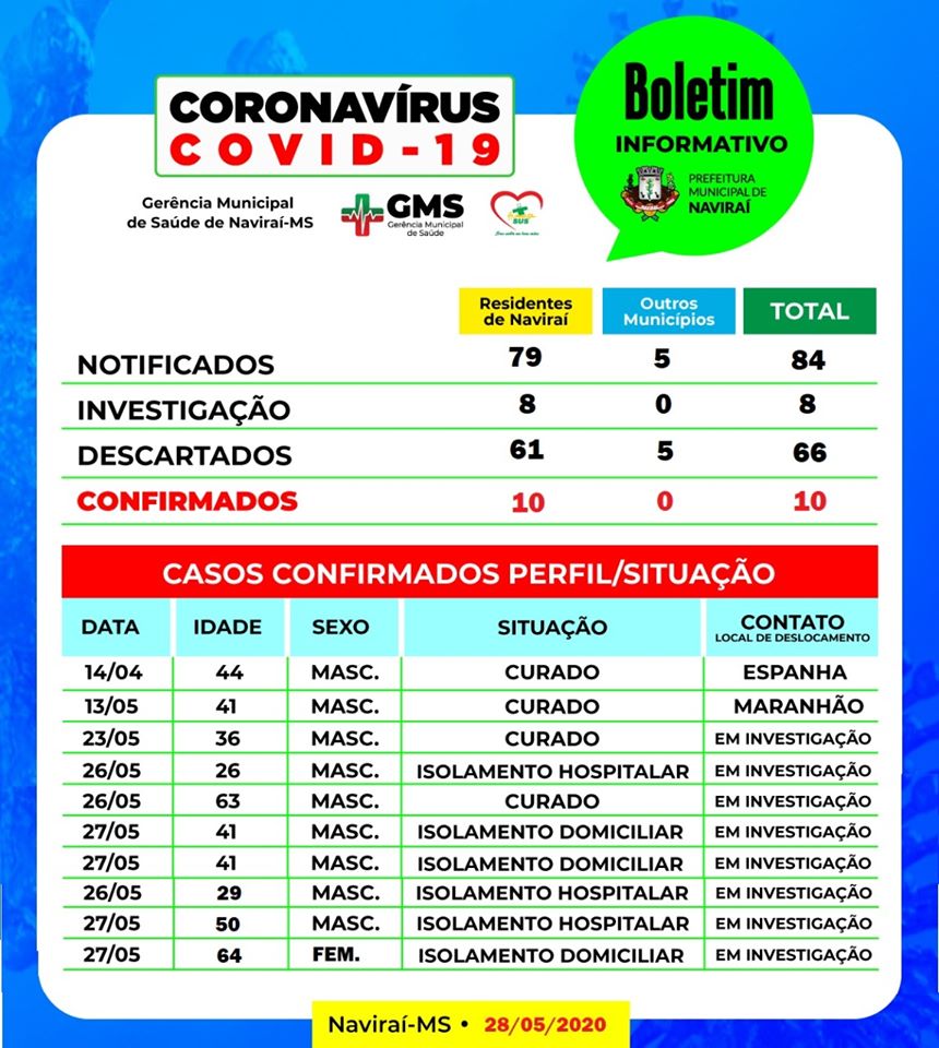 Regiaonline Covid-19: Em Naviraí, chega a 10 os casos de Coronavírus.